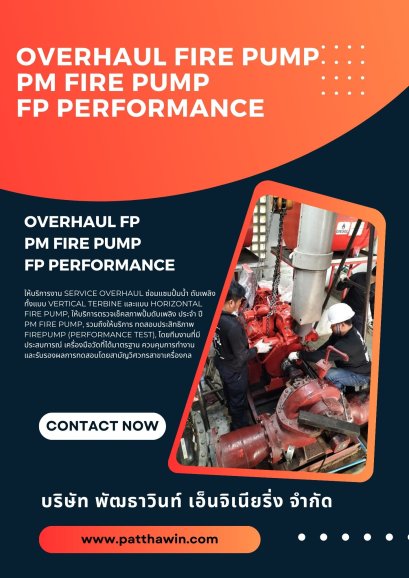 ผู้ให้บริการงาน OVERHAUL FIRE PUMP / PM FIRE PUMP ตรวจสอบ, เปลี่ยนถ่าย ประจำปี / FIRE PUMP PERFORMANCE (ทดสอบประสิทธิภาพปั้มดับเพลิง)