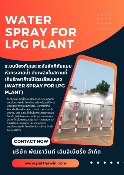 ระบบป้องกันอัคคีภัยแบบหัวกระจายน้ำดับเพลิงในสถานที่เก็บรักษาก๊าซปิโตรเลียมเหลว (water spray for lpg plant) ตามประกาศกรมธุรกิจพลังงาน พ.ศ. ๒๕๖๓