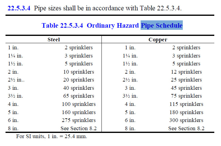 NFPA-13 Pipe Schedule Method for Firefighting Sprinkler System Designing